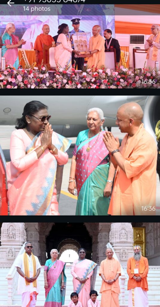 अयोध्यावासियों ने भी सड़क किनारे खड़े होकर पुष्प वर्षा, जयकारों संग देश की प्रथम नागरिक का गर्मजोशी से स्वागत किया। राष्ट्रपति ने भी अयोध्यावासियों का अभिवादन किया। कार्यक्रम को और भव्य बनाने के लिए रामलीला के अंश, झांकियां, ढोल-नगाड़ा, शंखनाद, वेदपाठ और भजन-कीर्तन जैसी पारंपरिक प्रस्तुतियां भी आयोजित की गईं, जिससे अयोध्या की समृद्ध धार्मिक और सांस्कृतिक विरासत की झलक देखने को मिली। राष्ट्रपति के आगमन के मद्देनजर सजी अयोध्या नगरी में हर ओर श्रद्धा, उत्साह और उल्लास का वातावरण रहा।