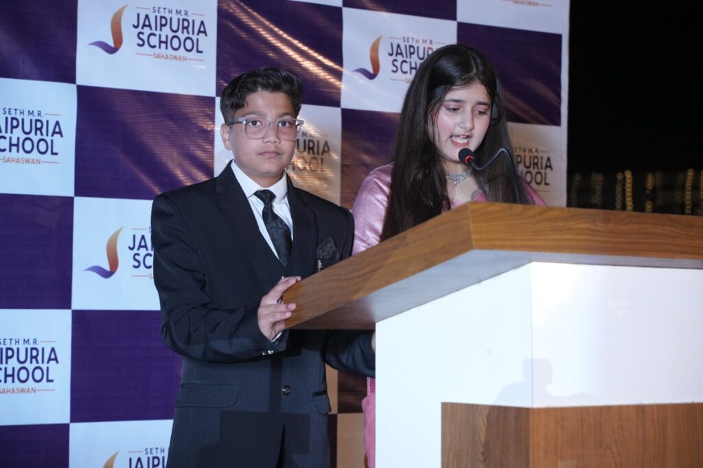 सहसवान/बदायूं : सेठ एम आर जयपुरिया में सत्र 2025–26 के अंतर्गत *“वसुधा – द ग्लोबल फैमिली सेलिब्रेशन”* (वार्षिक उत्सव) का आयोजन बड़े ही हर्षोल्लास एवं भव्यता के साथ संपन्न हुआ । जिसमें लगभग 400 विद्यार्थियों ने सक्रिय रूप से भाग लिया। कार्यक्रम का मुख्य विषय *“वसुधैव कुटुम्बकम्”* रहा, जो पूरे विश्व को एक परिवार मानने का संदेश देता है। इस अवसर पर विद्यार्थियों ने उत्तर भारत, दक्षिण भारत तथा कश्मीरी लोकनृत्य सहित विभिन्न सांस्कृतिक प्रस्तुतियाँ दीं।