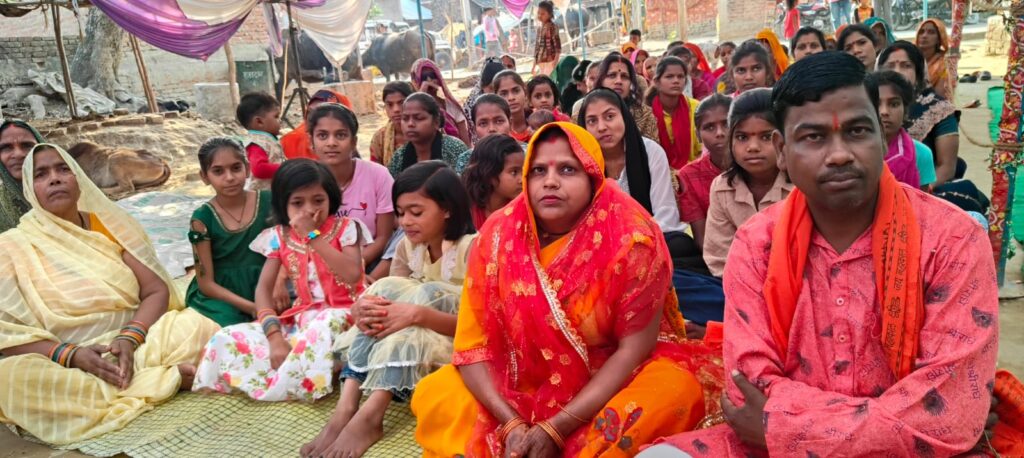 कलश यात्रा में महिला पुरुष सिर पर कलश लेकर डीजे के धुन पर भक्त थिरकते हुए आगे बढ़ते रहे। कलश यात्रा में पुरुष और बच्चे झंडा लेकर आगे चल रहे थे। कलश यात्रा मढीटोला दुर्गा मंदिर पूरब टोला हनुमान मंदिर मँझपटिया स्थित काली मंदिर होते हुए कथास्थल पहुंची। इससे पूर्व कलशयात्रा मसौली चौराहे पर अमीर गुलाल उड़ते हुए भक्ति गीतों पर थिरकती युक्तियां व युवको ने माहौल को भक्तिमय बना दिया। कल्याणी नदी से जल भरकर पुन कलश यात्रा कथा स्थल पर पहुंची। जहां पर नैमिषशरण से आये आचार्य सचिन महाराज व आशीष महाराज आदि आचार्यो के द्वारा विधिवत पूजा अर्चना कर कलश स्थापना हुई । कथावाचक उमेश महाराज जी ने कहा कि भागवत कथा सुनने से व्यक्ति का आध्यात्मिक विकास होता है। यह भगवान के प्रति भक्ति को गहरा करता है और व्यक्ति को मोक्ष की ओर ले जाता है। फिर आरती के साथ प्रसाद का वितरण किया गया । इस मौके पर कथा आयोजक श्रवण कुमार किशन रस्तोगी, मास्टर सुरजन यादव, नरेंद्र चौहान, राजेंद्र यादव, कल्लूराम यादव, विनीत यादव कृष्ण कुमार मोनू कश्यप राजमल रावत सुनील चौहान आदि मौजूद रहे ।