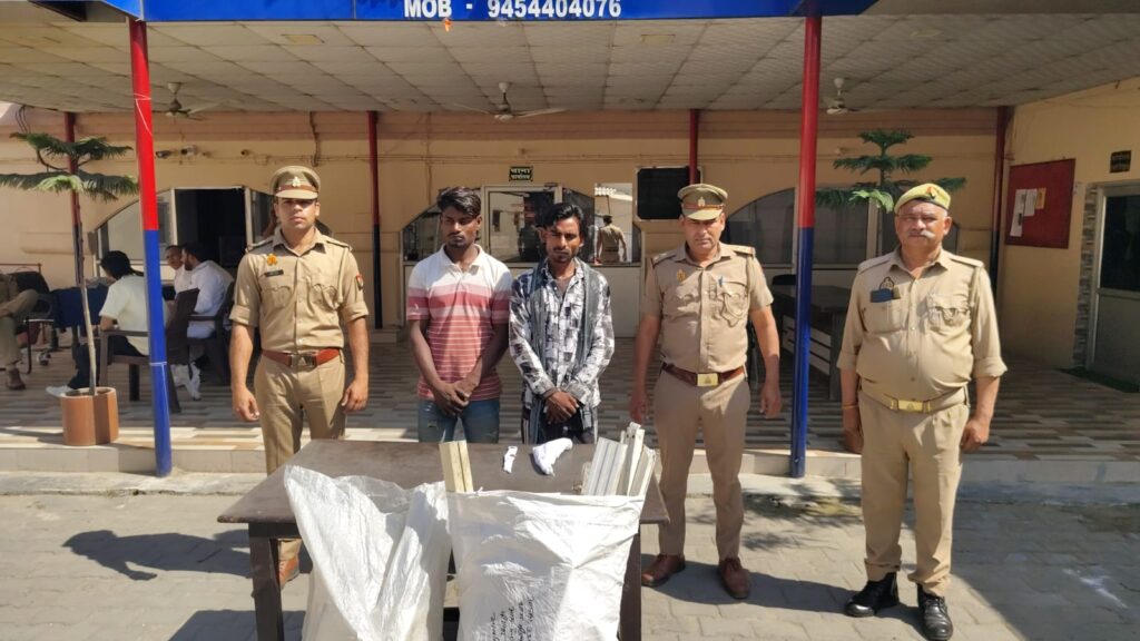 मुजफ्फरनगर,, थाना मीरापुर। वरिष्ठ पुलिस अधीक्षक जनपद मुजफ्फरनगर संजय कुमार वर्मा, व क्षेत्र अधिकारी जानसठ रूपाली राॅय, के दिशा निर्देशन में एवंम थाना मीरापुर प्रभारी राजीव शर्मा, के कुशल नेतृत्व में आज दिनांक, 25,,03,,2026,, को थाना मीरापुर पुलिस टीम उप निरीक्षक प्रवीण कुमार,,उप निरीक्षक योगेश तेवतिया,,हेड कांस्टेबल जितेंद्र यादव,,व कांस्टेबल सचिन चौधरी,,ने चोरी की घटना का सफल अनावरण करते हुए दो अभियुक्त शाहरुख पुत्र नूर इलाही,,व आसमौहम्मद पुत्र हारून, निवासी ग्राम कैथौडा थाना मीरापुर जनपद मुजफ्फरनगर, को चोरी किए गए सामान 15 किलो सिल्वर , 02, पंखे वह पुलिस द्वारा अभियुक्तों की तलाशी लेने पर , 01, छुरी, व 01,तमंचा,12, बोर,01,कारतूस बरामद किया गया है ।थाना थाना मीरापुर पुलिस द्वारा अभियुक्तों के खिलाफ अग्रिम विधिक कार्यवाही की जा रही है।