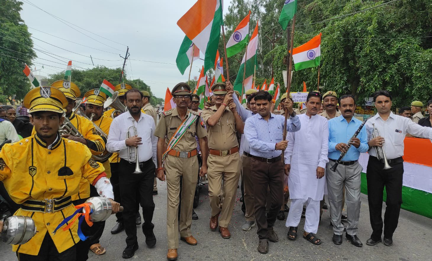 बिसौली : होमगार्ड संघ के बैनर तले सुरक्षाकर्मियों ने अमृत महोत्सव के तहत विशाल तिरंगा रैली निकाली। बैंड की आकर्षक देशभक्ति धुनों के बीच नगर के हाईवे समेत विभिन्न मार्ग मानो तिरंगामय हो गए थे। नगरवासियों ने जगह जगह तिरंगा यात्रा का पुष्पवर्षा कर भव्य स्वागत किया। कोतवाली परिसर से शुरू हुई तिरंगा रैली एम एफ हाईवे, पुलिस चौकी, मुख्य चौराहा, बुधबाजार, होली चौक, अटल चौक होती हुई तहसील परिसर पहुंची। सबसे आगे चल रहे बैंड की देशभक्ति धुनों पर वातावरण देशभक्ति से ओतप्रोत हो गया। तहसीलदार अशोक सैनी, कोतवाल बिजेन्द्र सिंह के नेतृत्व में दर्जनों पुलिसकर्मी व होमगार्ड हाथों में तिरंगा लिए भारतमाता की जय का उदघोष करते कदम से कदम मिलाकर चल रहे थे। उनके पीछे नगर के प्राथमिक विद्यालय के बच्चे यूनीफार्म में हाथों में तिरंगा झंडा लेकर बड़े ही जोश में नजर आ रहे थे। पुलिस चौकी पर भाजपा जिला उपाध्यक्ष दुर्गेश वार्ष्णेय, सरिता वार्ष्णेय, संगीता रस्तोगी, गणेश वार्ष्णेय आदि ने पुष्पवर्षा कर रैली का भव्य स्वागत किया। तहसील परिसर में राष्ट्रगान के साथ रैली का समापन हुआ। इस मौके पर चौकी इंचार्ज विश्नोई, मुनीर खां, नरेश चंद्र शर्मा, राजीव कुमार, प्लाटून कमांडर बब्लू शर्मा, देवेंद्र कुमार, नेमसिंह आदि प्रमुखता से मौजूद रहे।