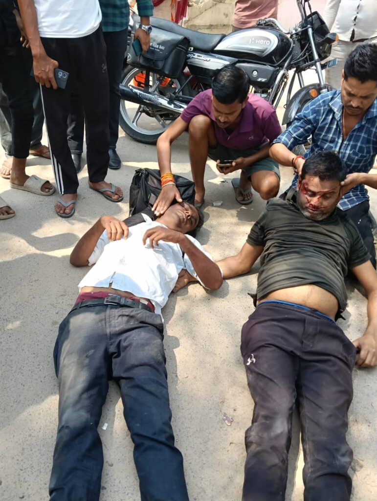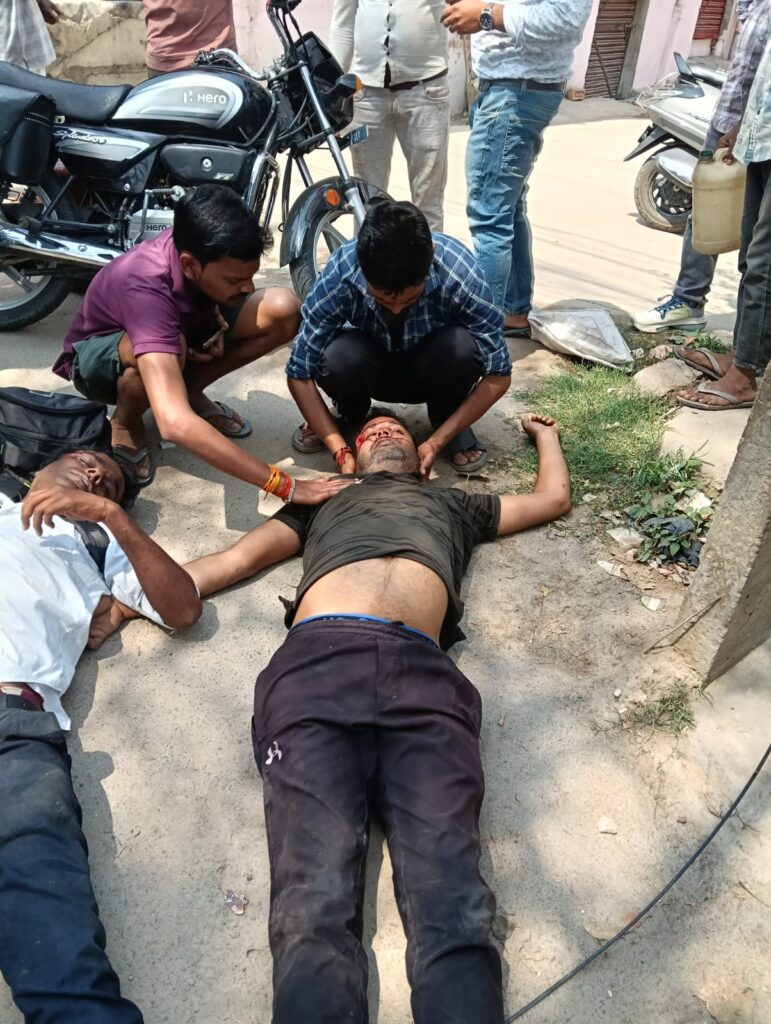 आज दोपहर 12:30 से एक के बीच में भुजंगी पुरवा मोड़ पर पीपल के पेड़ के पास खड़ी थी फोर व्हीलर कि अचानक बहुत जल्दी उसे उधर बगल से निकल रही थी टू व्हीलर सवार दो लोग की हो गई टक्कर दोनों की हालत गंभीर फोर व्हीलर वाले हो गए फरार घायलों को वहां पर मौजूद लोगों ने जिला अस्पताल बेचने की की तैयारी