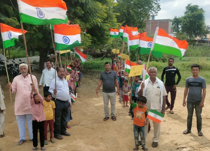 औरैया-भारत सरकार के तत्वाधान में घर-घर तिरंगा कार्यक्रम को सफल बनाने के लिए प्राथमिक विद्यालय कुल्हुरुआ में छात्र-छात्राओं के द्वारा तिरंगा पदयात्रा निकालकर लोगों को आजादी के अमृत महोत्सव का हिस्सा बनने के लिए जागरूक किया। छात्र छात्राओं के साथ स्थानीय जनों ने भी इस पदयात्रा में बढ़ चढ़कर हिस्सा लिया।
