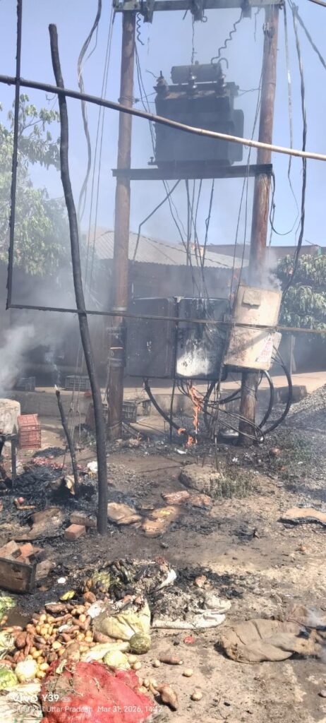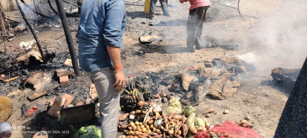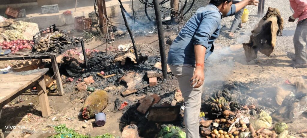 दुकानदारों ने भाग कर जान बचाई पास मे लगी सब्जी की दुकानें भी जल गई।
