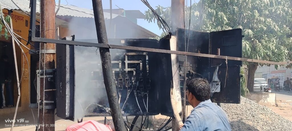 आज नेशनल हाईवे के पास ट्रांसफार्मर से चिंगारी लगने से आग लगी। आग लगने लोगों में भगदड़ मच गई और