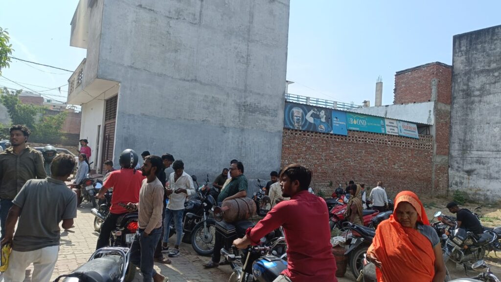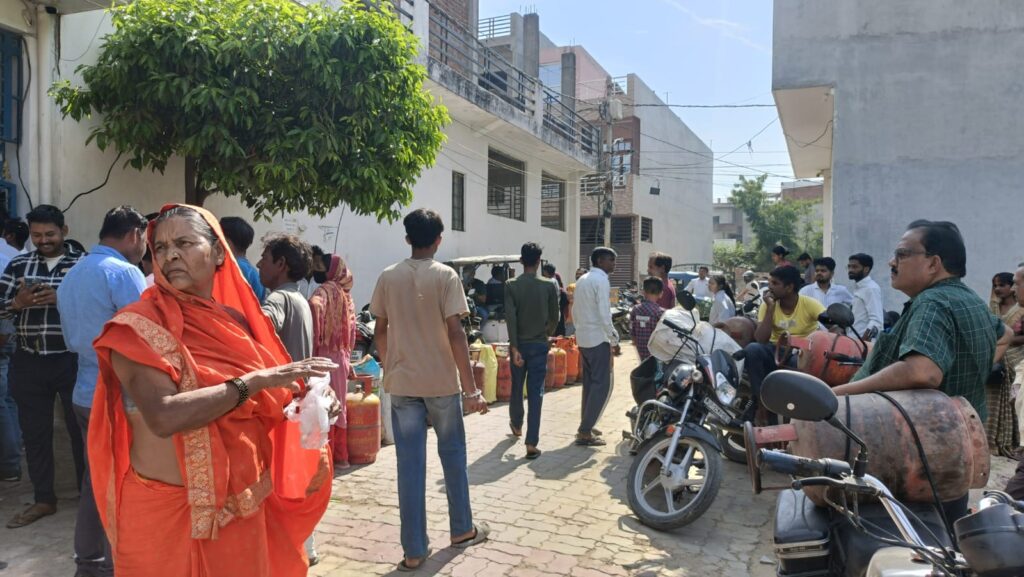 आज सुबह 4:00 से लोगों की भीड़ बढ़ती गई गैस के लिए लोग लगा रखे हैं लाइन गैस की किल्लत से परेशान लोग कहते हैं की आज गैस नहीं मिल रही है कल हुई बारिश से रखी हुई लकड़ी कंडा भी भीग गए है