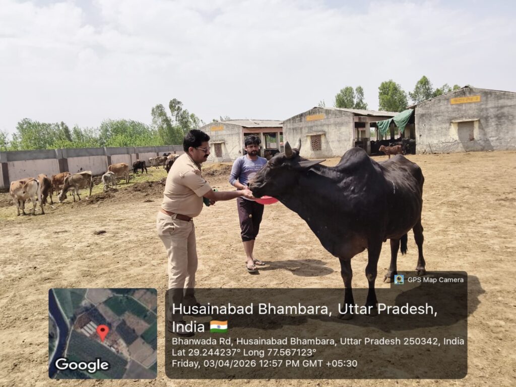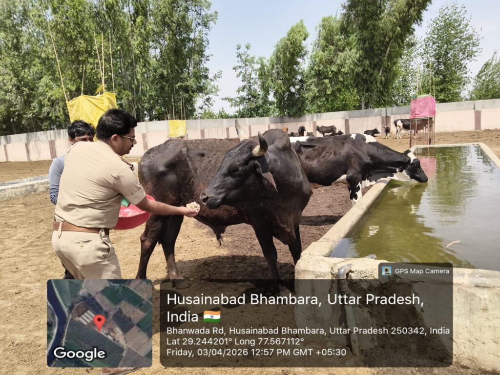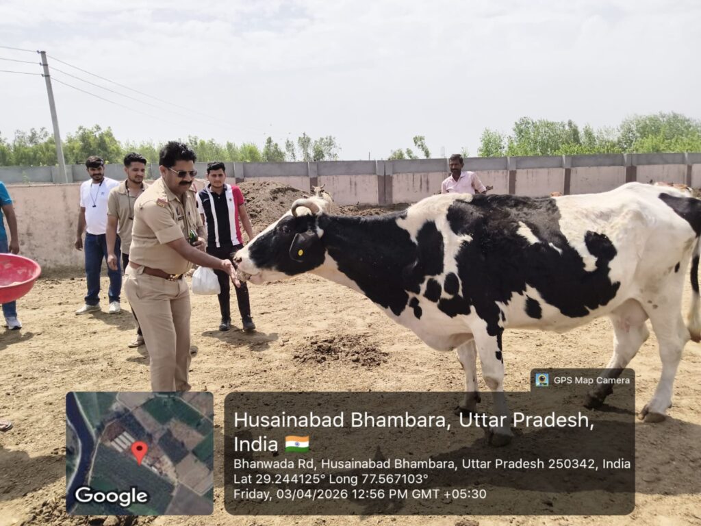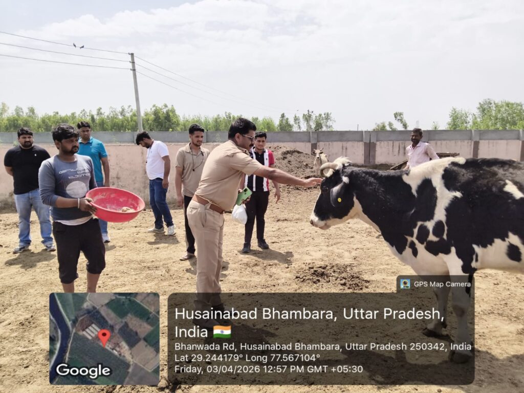 मुजफ्फरनगर। जनपद के रतनपुरी थाना क्षेत्र में आज एक सराहनीय और प्रेरणादायक कार्य देखने को मिला, जब थाना प्रभारी राकेश जी ने गौशाला पहुंचकर गौ माता की सेवा की। इस दौरान उन्होंने पूरे श्रद्धा भाव के साथ गौ माता को अपने हाथों से लोई खिलाई और हरा चारा भी अर्पित किया।