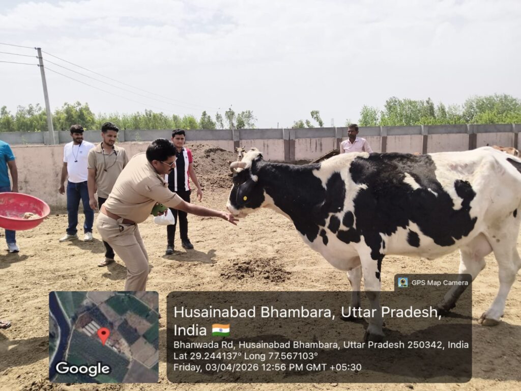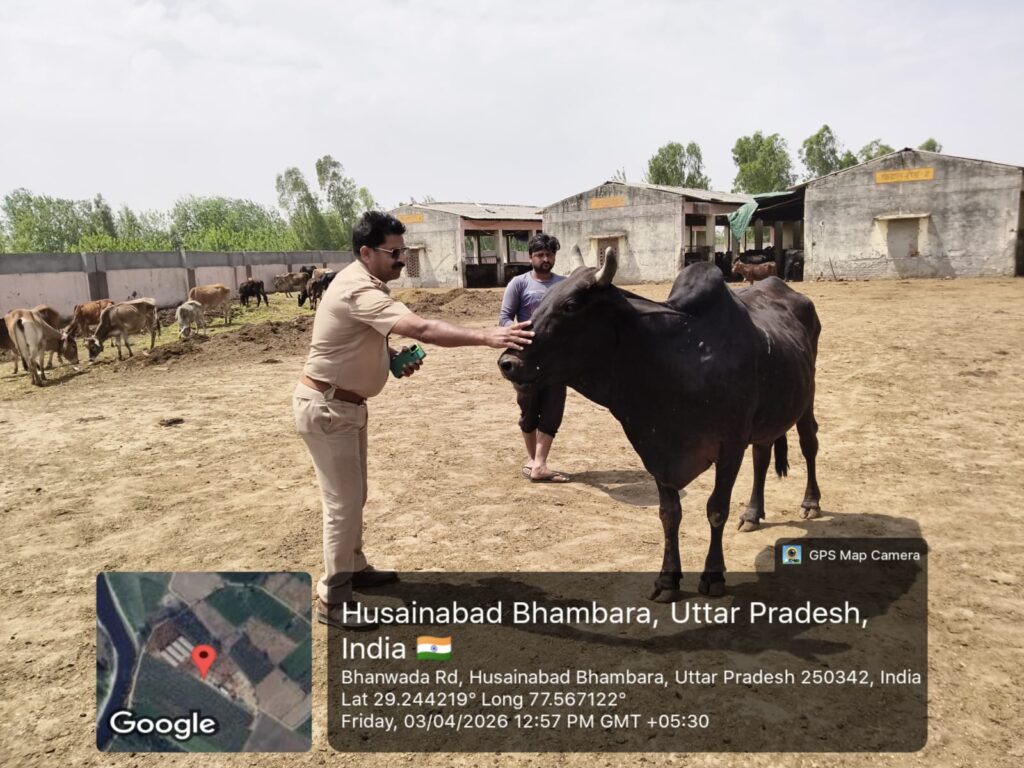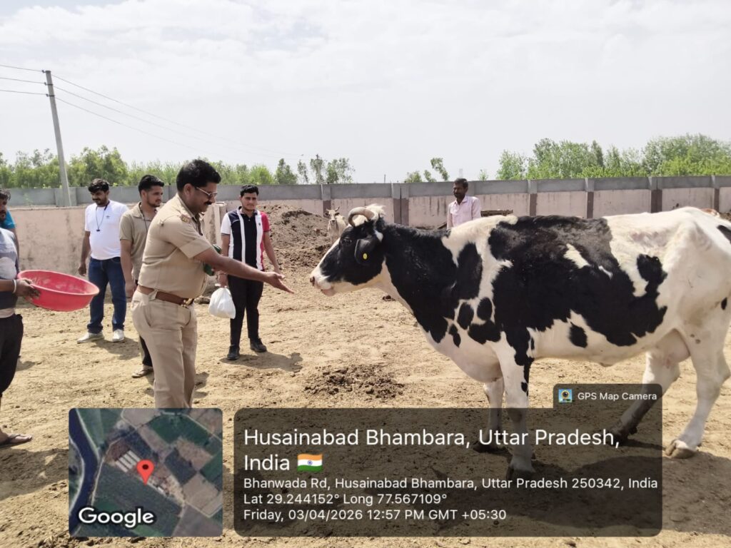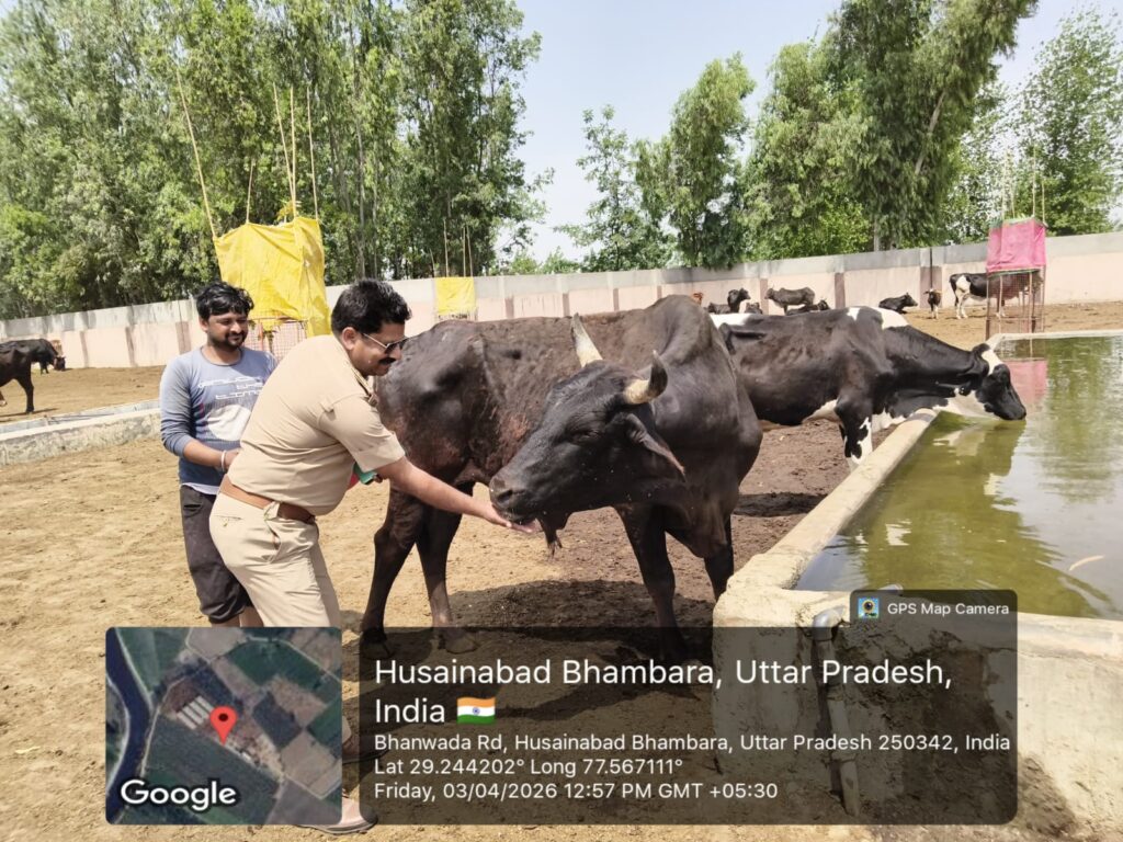 मुजफ्फरनगर। जनपद के रतनपुरी थाना क्षेत्र में आज एक सराहनीय और प्रेरणादायक कार्य देखने को मिला, जब थाना प्रभारी राकेश जी ने गौशाला पहुंचकर गौ माता की सेवा की। इस दौरान उन्होंने पूरे श्रद्धा भाव के साथ गौ माता को अपने हाथों से लोई खिलाई और हरा चारा भी अर्पित किया।