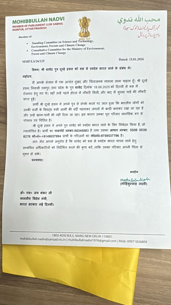 रूस में बंधक बनाए गए रामपुर के युवक शावेद की दर्दनाक मृत्यु, सांसद मोहिबुल्लाह नदवी ने केंद्र सरकार से पार्थिव शरीर वापस लाने और न्याय की मांग की