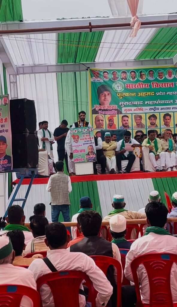 आज मुरादाबाद में आयोजित विशाल महापंचायत में जिला अध्यक्ष डॉ. आज़म साहब ने किसानों की समस्याओं को मजबूती से उठाया। इस दौरान स्मार्ट मीटर जबरन लगाए जाने पर नाराज़गी ज़ाहिर की