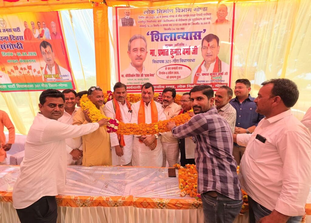 गोंडा- जनपद गोंडा के गौरा विधानसभा क्षेत्र के अंतर्गत गौरा पांडे, परसा तिवारी, घारीघाट, अल्लीपुर एवं गिन्नी नगर मार्ग के बहुप्रतीक्षित सड़क निर्माण कार्य का भव्य शिलान्यास कार्यक्रम आयोजित किया गया। कार्यक्रम में क्षेत्रीय विधायक मा० श्री प्रभात कुमार वर्मा जी मुख्य अतिथि के रूप में उपस्थित रहे।