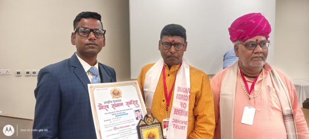 राष्ट्र सेवा, संस्कृति संरक्षण एवं मानवता के प्रति उत्कृष्ट योगदान के लिए डॉ. श्रवण कुमार गुप्त (उत्तर प्रदेश) को “राष्ट्रीय गुजरात गौरव सम्मान – 2026” से सम्मानित किया गया। यह सम्मान Unique Records of Universe द्वारा हार्टफुलनेस योग प्रशिक्षण केंद्र, कलोल (गुजरात) में आयोजित भव्य समारोह में प्रदान किया गया।
