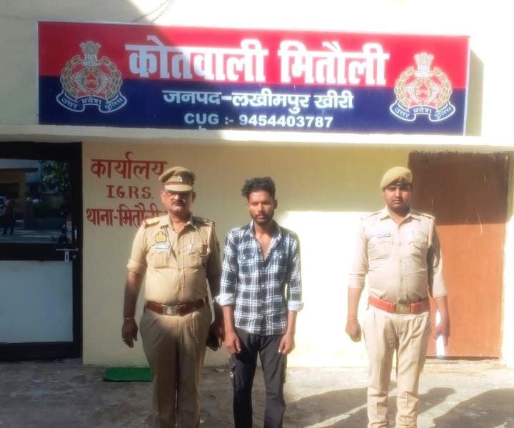 मितौली खीरी, 6 अप्रैल 2026। पुलिस अधीक्षक खीरी डा0 ख्याति गर्ग के निर्देशन में सम्पूर्ण जनपद में अपराध एवं अपराधियों के विरुद्ध चलाये जा रहे अभियान के अंतर्गत अपर पुलिस अधीक्षक खीरी के पर्यवेक्षण व क्षेत्राधिकारी मितौली के कुशल मार्ग दर्शन तथा प्रभारी निरीक्षक मितौली महेश पाठक के नेतृत्व में कोतवाली मितौली खीरी की पुलिस टीम द्वारा लडकी को बहला फुसलाकर भगा ले जाने वाले अभियुक्त मु0अ0सं0 130/2026 धारा 137(2)/87 बीएनएस के वांछित अभियुक्त विपिन कुमार पुत्र रामाधीन निवासी ग्राम नीची मघरौली नूरपुर हथौडा थाना बिलग्राम जनपद हरदोई को बडागांव मोड मितौली से गिरफ्तार कर विधिक कार्यवाही करते हुए माननीय न्यायालय के समक्ष भेजा गया।