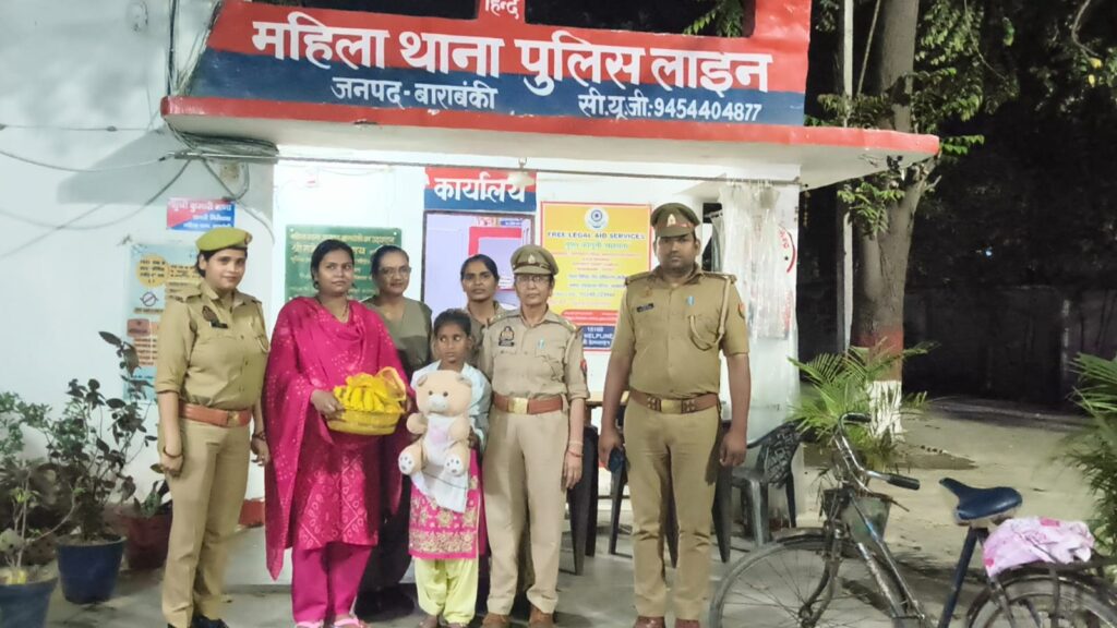 बाराबंकी:- अमेठी से लापता हुई एक 12 वर्षीय नाबालिग बच्ची को महिला थाना बाराबंकी पुलिस ने महज 5 घंटे में उसके परिजनों से मिला दिया। बच्ची अंजोली रावत अपने घर से साइकिल पर सवार होकर निकली थी और रास्ता भटककर बाराबंकी के जहांगीराबाद क्षेत्र पहुंच गई थी।अमेठी के शिवरतनगंज थाना क्षेत्र के जेहटा गांव निवासी अंजोली रावत (12) पुत्री शिवसरन रावत अपने मामा के घर जाने के लिए नीली साइकिल से निकली थी। रास्ते में वह भटक गई और जहांगीराबाद, बाराबंकी पहुंच गई। गांव के एक 60 वर्षीय व्यक्ति नंदू प्रसाद ने उसे साइकिल चलाते हुए देखा और नाम-पता पूछने पर वह कुछ नहीं बता पाई।सूचना मिलने पर पीआरवी 5492 जहांगीराबाद ने बच्ची को सकुशल महिला थाना बाराबंकी पहुंचाया। महिला थाना पुलिस टीम ने बच्ची से पूछताछ की। काफी देर बाद बच्ची ने अपना नाम अंजोली, गांव का नाम जेहटा और जनपद का नाम अमेठी बताया।महिला कांस्टेबल काजल शर्मा ने बच्ची की बातों को ध्यान से सुना और सी-प्लान ऐप का उपयोग कर उसके बताए गए गांव व थाने का पता लगाया। इसके बाद ग्राम प्रधान आशीष मिश्रा से मोबाइल पर संपर्क किया और उन्हें पूरी घटना की जानकारी दी गई।ग्राम प्रधान ने पुष्टि की कि अंजोली नाम की एक बच्ची उनके गांव से लापता हुई थी, जिसकी गुमशुदगी थाना शिवरतनगंज, अमेठी में दर्ज कराई गई है। कांस्टेबल काजल शर्मा ने संबंधित थाने से संपर्क कर विवेचक उपनिरीक्षक मनोज कुमार प्रजापति को घटना से अवगत कराया। थाना शिवरतनगंज विवेचक मनोज कुमार प्रजापति अपनी टीम और बच्ची के माता-पिता के साथ बाराबंकी महिला थाना पहुंचे।महिला थाना प्रभारी कुमारी रत्ना के नेतृत्व में पुलिस टीम ने मात्र 5 घंटे की कड़ी मशक्कत के बाद बच्ची अंजोली को देर रात करीब 11 बजे उसके परिजनों, जिसमें उसके बड़े पापा रामशरन भी शामिल थे, को सकुशल सौंप दिया। इस दौरान बच्ची को फल की टोकरी, चॉकलेट और टेडीबियर भी दिए गए। पुलिस ने बच्ची के उज्जवल भविष्य की कामना की। यह पूरी कार्रवाई पुलिस अधीक्षक बाराबंकी अर्पित विजयवर्गीय के निर्देशानुसार की गई।