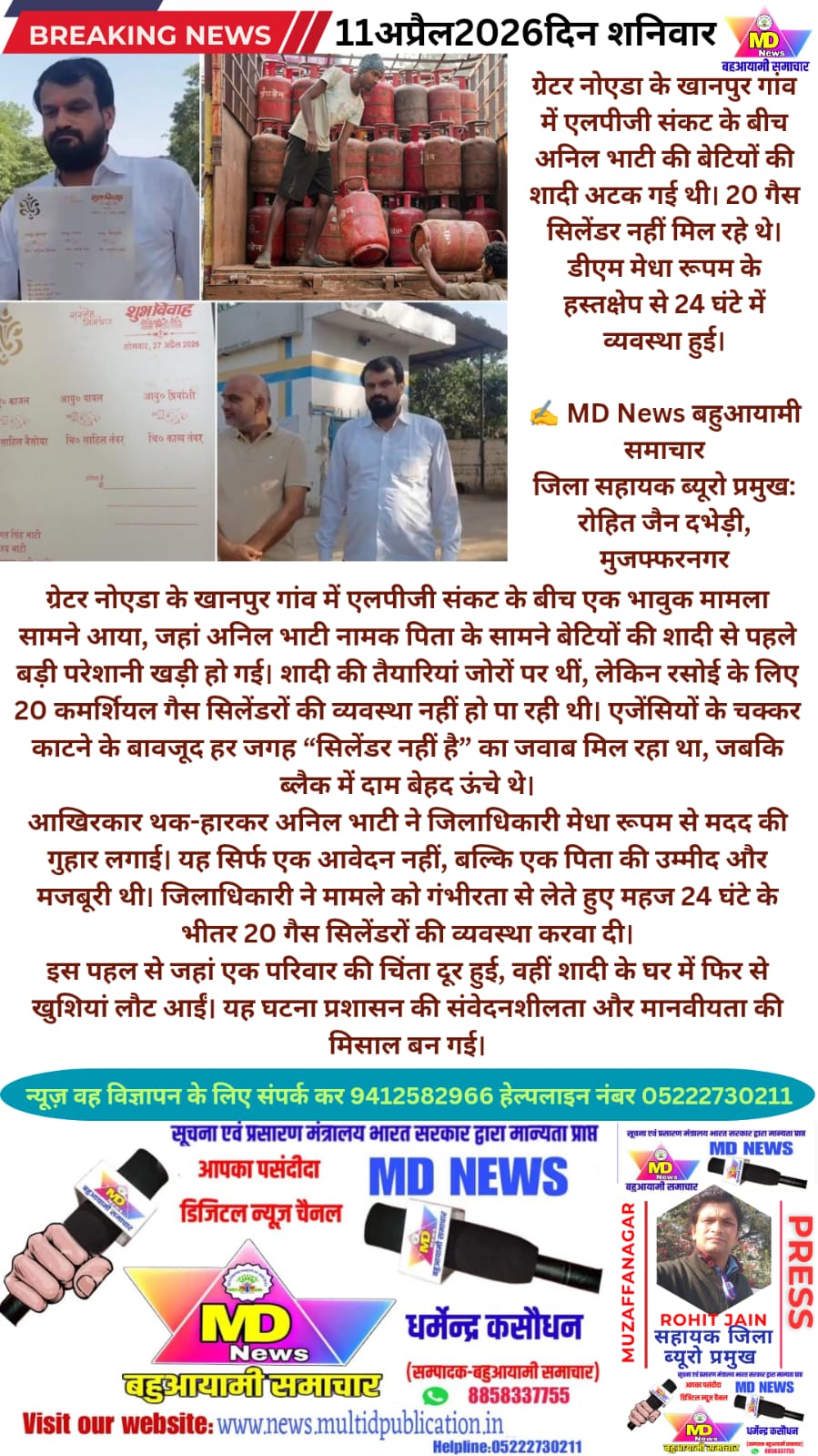 ग्रेटर नोएडा के खानपुर गांव में एलपीजी संकट के बीच एक भावुक मामला सामने आया, जहां अनिल भाटी नामक पिता के सामने बेटियों की शादी से पहले बड़ी परेशानी खड़ी हो गई। शादी की तैयारियां जोरों पर थीं, लेकिन रसोई के लिए 20 कमर्शियल गैस सिलेंडरों की व्यवस्था नहीं हो पा रही थी। एजेंसियों के चक्कर काटने के बावजूद हर जगह “सिलेंडर नहीं है” का जवाब मिल रहा था, जबकि ब्लैक में दाम बेहद ऊंचे थे।