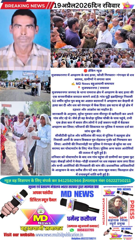 मुजफ्फरनगर जनपद के थाना रामराज क्षेत्र में अपहरण के बाद हत्या की एक सनसनीखेज वारदात सामने आई है। गांव पुट्ठी इब्राहिमपुर निवासी 50 वर्षीय सुरेश पुत्र बाबू का अज्ञात बदमाशों ने अपहरण कर बेरहमी से हत्या कर दी और शव को गंगनहर में फेंक दिया। इस घटना से पूरे क्षेत्र में दहशत और आक्रोश का माहौल है।