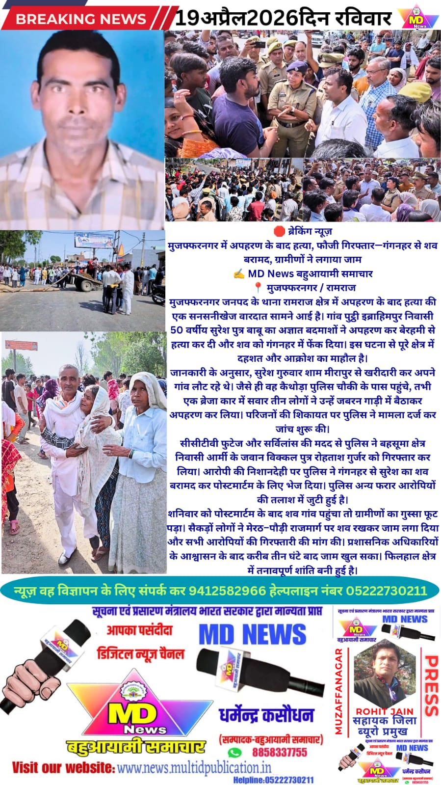 MD News बहुआयामी समाचार जिला सहायक ब्यूरो प्रमुख रोहित जैन दभेडी वाले मुजफ्फरनगर