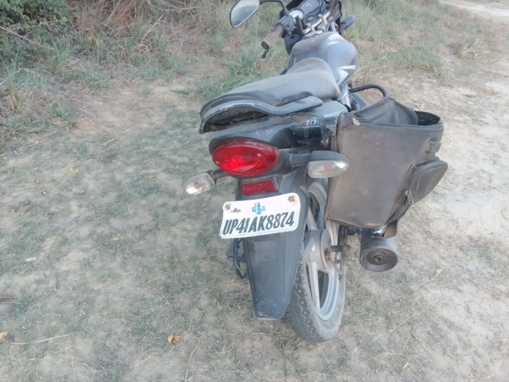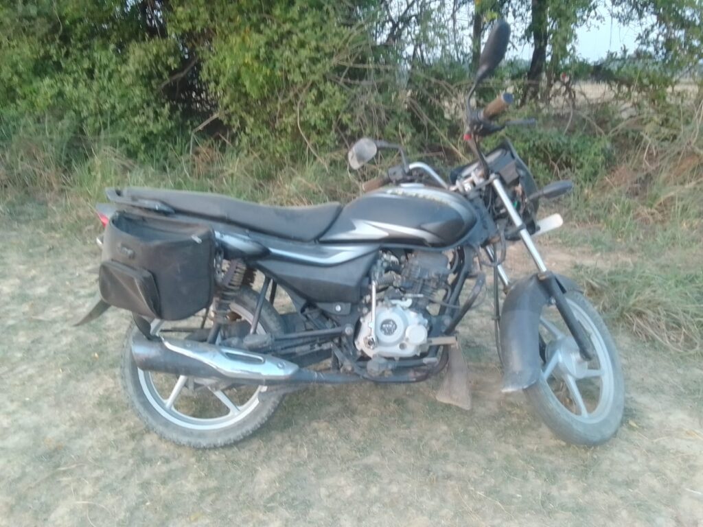 सूचना मिलने पर मौके पर पहुंचने पर चरवाहों एवं कुछ ग्रामीणों ने बताया कि यह मोटरसाइकिल चार-पांच दिनों से लावारिस हालत में यहीं खड़ी है। बाइक की पिछली नंबर प्लेट पर नीले कलर से धन का निशान बना हुआ है। इस मोटरसाइकिल का आसपास भी कोई दावेदार नहीं मिला।