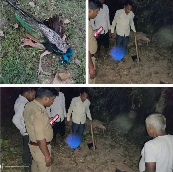 रूदौली क्षेत्र के मीनापुर गांव में सोमवार शाम पंचायत भवन के निकट राष्ट्रीय पक्षी मोर मृत अवस्था में मिलने से ग्रामीणों में शोक की लहर दौड़ गई। सूचना मिलते ही शुजागंज चौकी प्रभारी अभिषेक सिंह तत्काल पुलिस टीम के साथ मौके पर पहुंचे और मामले की जानकारी वन विभाग को दी।मौके पर पहुंची टीम ने आवश्यक कार्रवाई करते हुए मोर के शव का चिकित्सकीय परीक्षण एवं पोस्टमार्टम कराया, ताकि मौत के कारणों का पता लगाया जा सके। इसके बाद राष्ट्रीय पक्षी मोर का पूरे विधि-विधान एवं सम्मान के साथ अंतिम संस्कार कराया गया।चौकी प्रभारी अभिषेक सिंह की तत्परता और संवेदनशीलता की ग्रामीणों ने सराहना की। ग्रामीणों का कहना था कि वन्य जीवों और पक्षियों के संरक्षण के प्रति प्रशासन का यह कदम सराहनीय है।