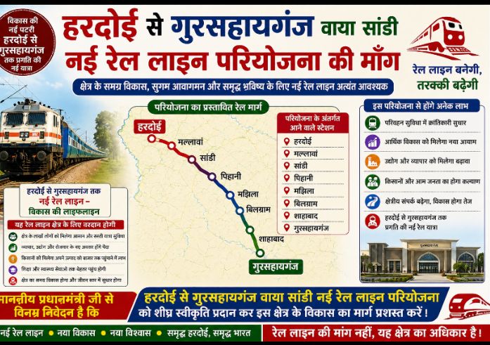 हरदोई से गुरसहायगंज (कन्नौज) वाया सांडी नई रेल लाइन का सपना कब होगा पूरा?