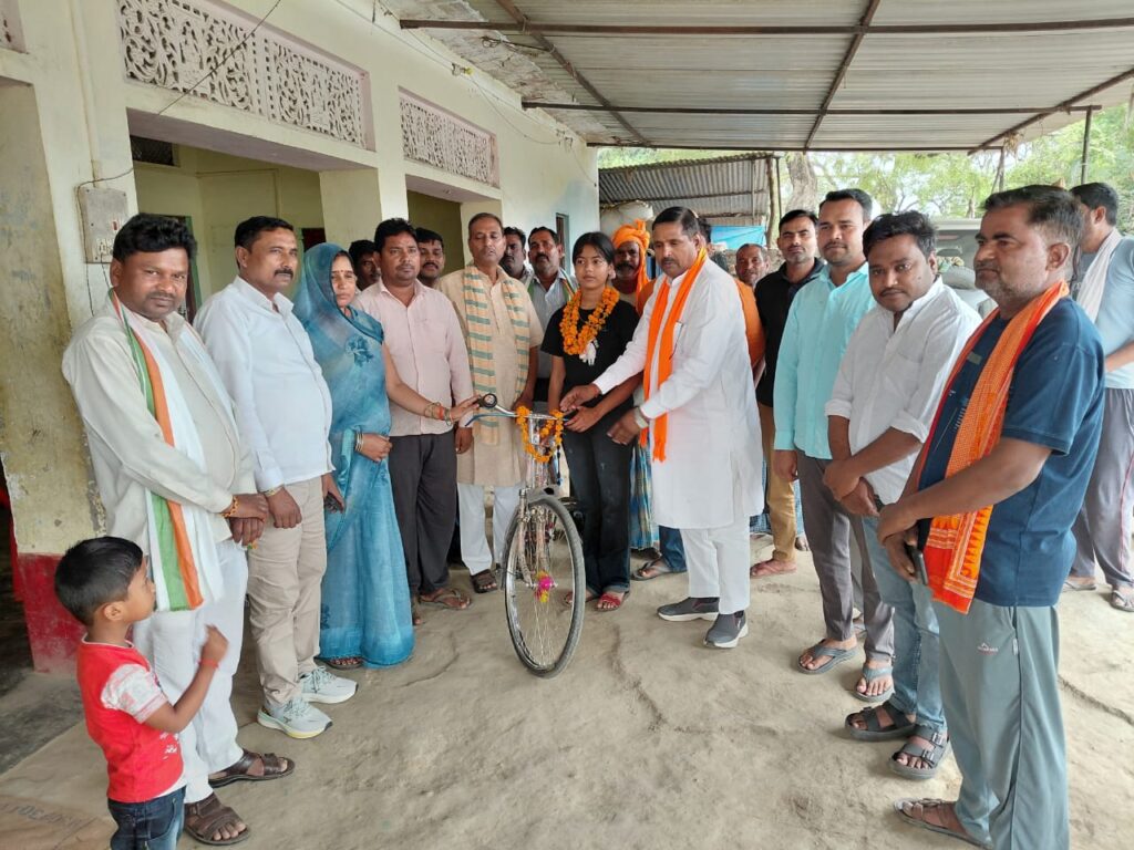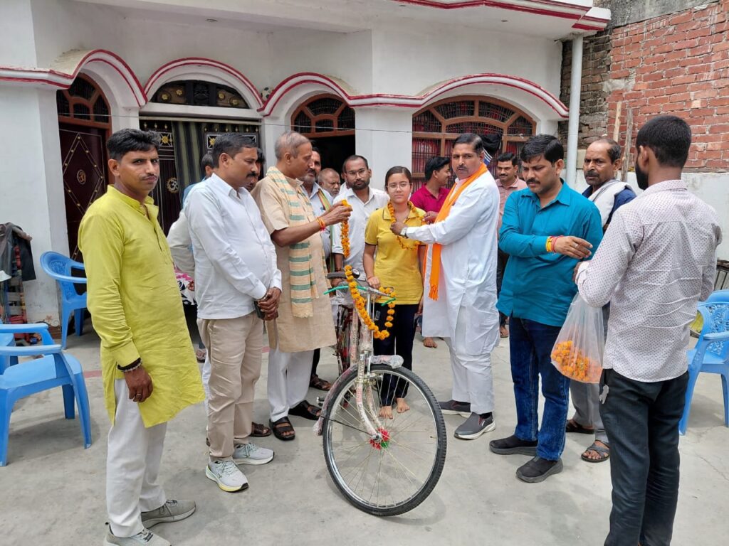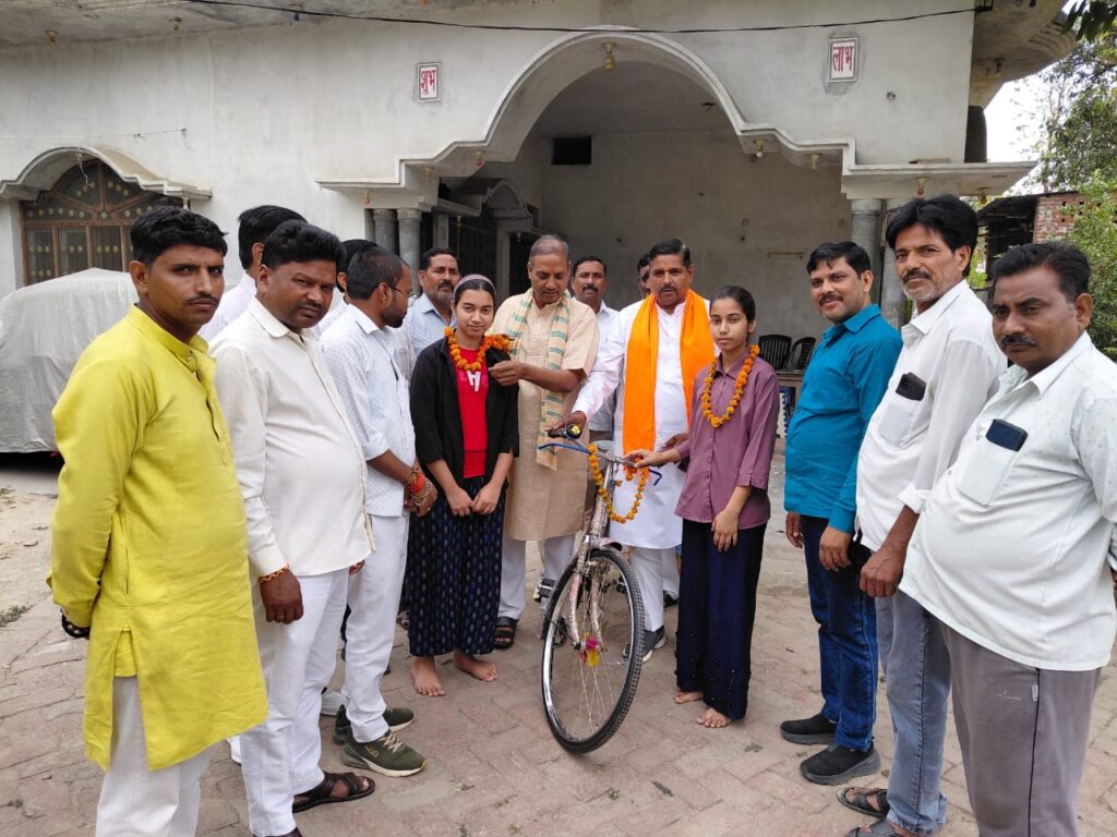 जैदपुर। जैदपुर में आज अपनी विधानसभा 269-जैदपुर में यूपी बोर्ड परीक्षा में प्रदेश में प्रथम स्थान प्राप्त करने वाली बेटी अंशिका वर्मा ग्राम अंदका विकासखंड सिद्धौर, द्वितीय स्थान अदिति वर्मा ग्राम बरियारपुर विकासखंड मसौली ,तृतीय स्थान परी वर्मा ग्राम पंचायत मौथरी विकासखंड हरख सभी प्रतिभाशाली छात्राओं के घर पहुंच कर माननीय जिला अध्यक्ष भारतीय जनता पार्टी राम सिंह वर्मा भूल्लन के नेतृत्व में मेरे द्वारा सभी को साइकिल भेंट कर शुभकामनाएं प्रेषित किया ।इस अवसर पर मंडल अध्यक्ष जैदपुर प्रेम प्रकाश द्विवेदी , महामंत्री अजय वर्मा , आकाश गुप्ता , पूर्व ब्लाक प्रमुख बुधराम रावत , मंडल उपाध्यक्ष अर्जुन रावत , जिला सहसंयोजक व्यवसायिक प्रकोष्ठ संजय वर्मा युवा नेता भूपेश वर्मा , तेज बहादुर रावत , विवेक रावत सहित कार्यकर्तागण उपस्थित रहे ।
