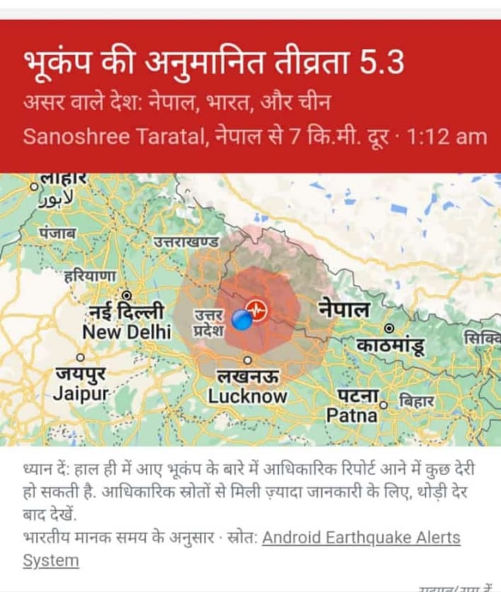 अभी अभी 1:19 बजे लखीमपुर खीरी में 5.3 तीव्रता के भूकंप के तेज झटके महसूस किए गए।